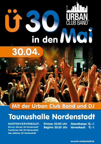 Endlich ist es wieder soweit! Die legendäre Ü30 in den Mai- Party des TuS Nordenstadt in der Taunushalle steht wieder vor der Tür. Auch dieses Jahr sind wieder nonstop feiern und tanzen bis zum Sonnenaufgang angesagt. Fantastische Stimmung und jede Menge Spaß sind hier garantiert.