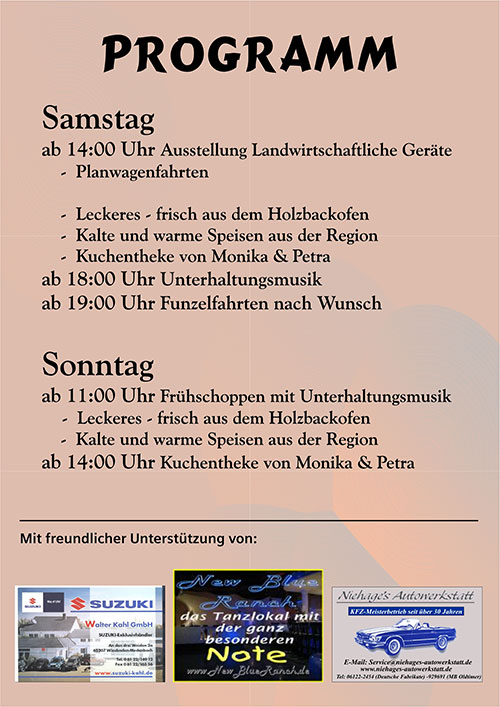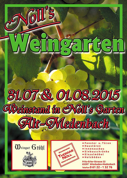 Neu dabei in diesem Jahr, Noll's Weingarten... Genießt gute Weine vom Weingut Gröhl und echte Weinlauben-Stimmung. Ebenfalls wieder dabei: em Party-Bücher sei Hoffest" am Samstag und Sonntag.